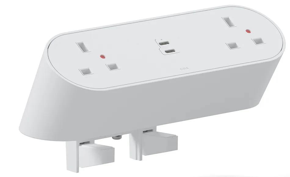 The sleek, elegant power module offers a sophisticated solution for powering modern workspaces with ease and efficiency. Its versatile design provides above‑desk mounting via integral clamps, eliminating the need to crawl underneath.